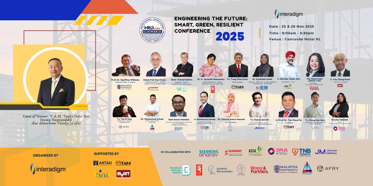 Be part of Engineering the Future: Smart, Green, Resilient 2025 — a two-day premier conference that brings together Malaysia’s top engineers, innovators, and policymakers to drive sustainable growth, digital transformation, and climate-resilient solutions.