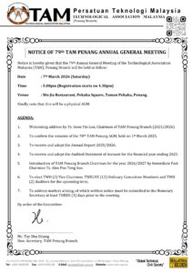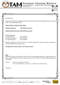 ATTN: All Members of Technological Association Malaysia, Penang Branch