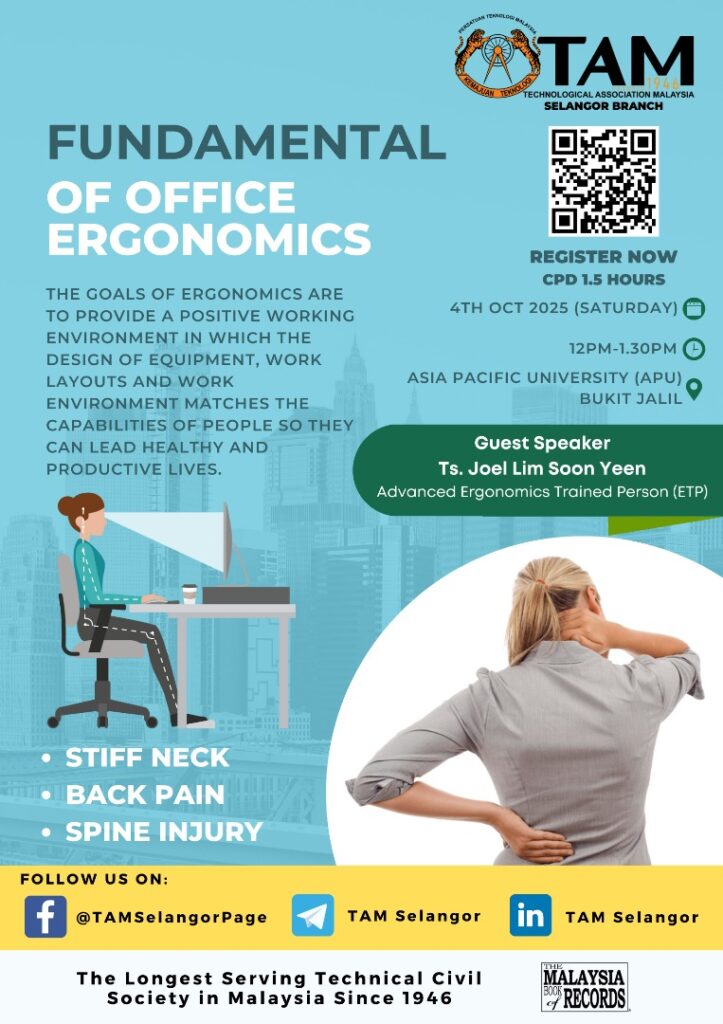 2. 12.00pm to 1.30pm: Fundamental of Office Ergonomics